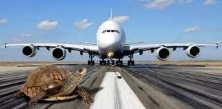 There are many reasons for delays at airports. Sometimes it's bad weather, sometimes it's a technical problem, and other times it's a passenger who is late to the boarding gate. Narita Airport in Tokyo, Japan has added a new cause of flight delays – a turtle going for a walk. The runway at Narita had to close for 12 minutes because a 2.1-kilogram turtle was spotted on the tarmac. The pilot of an airplane waiting to take off told air traffic controllers about the small reptile at around 11:35am. There was an immediate search for it. This caused the delay of five flights. Airport staff managed to locate the creature. They safely removed it with a net. They reported that it was unharmed.